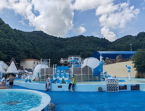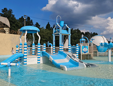 項目簡介:海仙谷水上樂園,位于云南曲靖,占地面積15000平米,集旅游度假、溫泉泡池、餐飲于一體水上度假樂園。以浪漫的蒂芙尼藍作為主色調(diào),飽含幸福、美滿之意,讓人沉浸在戲水的快樂中。輔以沙子的黃色,與周圍的山形成鮮明對比,體現(xiàn)出中國人寄情山水的浪漫情懷。定制沙漠綠洲主題擋板,增添了一抹童趣。根據(jù)不同年齡的需求,分了兒童歡樂區(qū)和成人游玩區(qū)。八組不同的戲水設施,刺激程度各不相同,適合全年齡段游客,水屋水寨、沖天滑梯、造浪池等,任君挑選,讓大人小孩在這里都唔那個找到屬于自己的游玩方式,享受美好的度假時光。